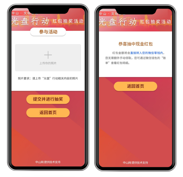 參與者將就餐后的“光盤”照片上傳到活動(dòng)頁(yè)面即可抽取紅包。