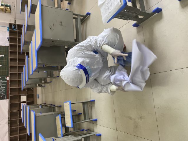 任課教師及時帶領余下學生有秩序離開課室,到備用點等候,后勤安排人員對原教室進行開窗通風和全面消毒。