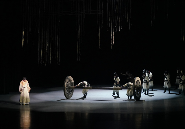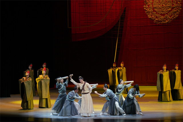 而在當晚的演出中,大劇場座無虛席,演員們精湛的表演征服了觀眾。落幕時,觀眾起身遲遲不愿離去,掌聲、喝彩聲、叫好聲連成一片。