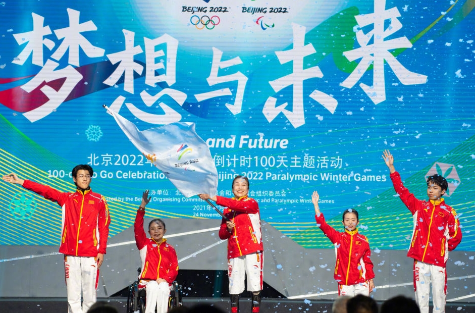 日前,北京市冬奧示范助殘社會組織的50多名代表受邀在國家體育館舉行了冬殘奧會倒計時100天快閃活動。