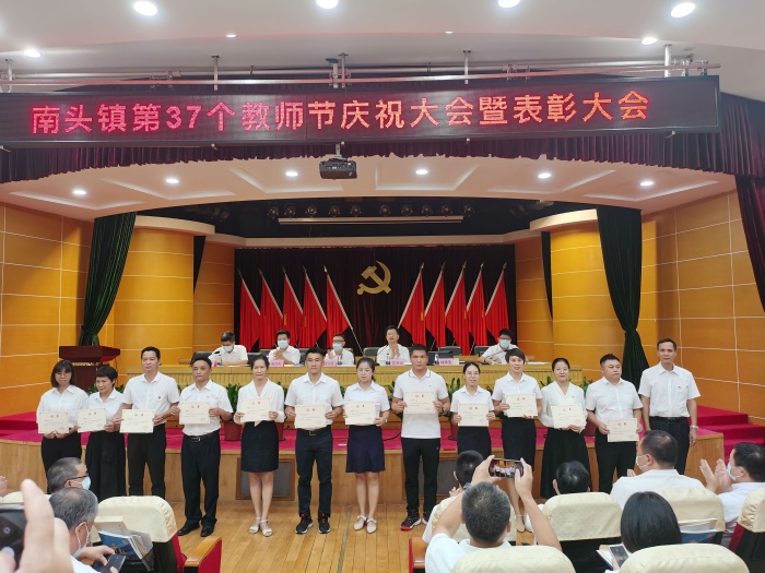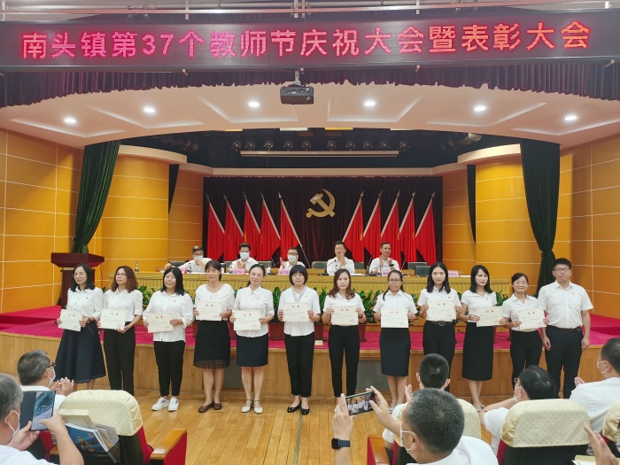 會上,全體參會人員首先觀看了南頭教育宣傳片。接著,鎮黨委委員鐘坤海同志總結了上一學年教育工作,充分肯定了南頭鎮全體教育工作者取得的不俗成績,并部署下一學年教育工作。隨后,鎮長藍海斌同志宣讀表彰決定。南頭鎮將軍小學有16名優秀教師在慶祝大會上受到了表彰。鎮領導徐寧軍、張均標、鐘坤海、張偉環、肖彥余分別為本年度先進集體和個人頒獎。