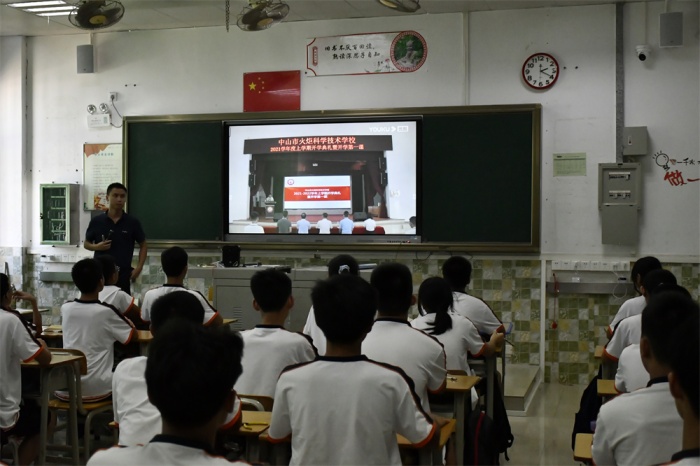 2021年9月10日,中山市火炬科學技術學校2021-2022學年度第一學期開學典禮暨開學第一課在南朗校區紫荊堂舉行,全校師生通過教室多媒體直播系統進行收看。中山市火炬科學技術學校校長程少輝,中山市反詐騙中心翠亨新區分中心劉逸澤警官,南朗街道南苑派出所駐校民警鐘潤祥警官,以及南朗街道綜治辦、禁毒辦的工作人員等參加了本次活動,活動儀式由學校德育處副主任袁建主持。