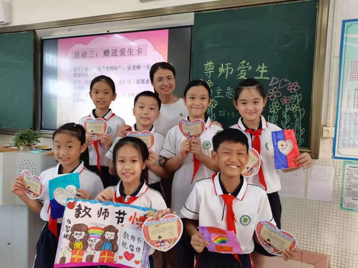 教師節當天,學校黨支部書記、校長孫華向全校教師轉達了石岐街道黨工委勞國南書記,學校駐點領導曹宇書記等上級領導對教師的問候和祝福。學校為每一位教師送上一封感謝信與一本《做黨和人民滿意的好教師》書籍,感謝老師們孜孜不倦地辛勤付出,勉勵全體教師努力辦好讓人民更滿意的教育,校園內凝聚著斗志昂揚的青春正能量!學校還組織了一系列教師節慶祝活動,激勵教師們賡續百年初心,擔當育人使命。學校黨支部組織全體教師學習9月8日習近平總書記給全國高校黃大年式教師團隊代表的回信,號召教師要牢記習近平總書記的囑托,堅守教育報國理想,為民族復興貢獻力量。守靜讀書會組織教師學習“人民教育家”于漪老師的先進事跡;觀看教師節主題MV《百年大先生》,在回首黨的百年風華中致敬李大釗、蔡元培、陳望道等為了民族獨立、國家富強而不懈奮斗的“大先生”。學校工會還組織了趣味心理團康活動,讓老師們愉悅身心。教師節到來之際,同學們積極踐行學校提倡的“廉潔文化”,紛紛通過自己制作手工、拍攝視頻的方式為老師獻上祝福。最燦爛的笑容送給您,最動聽的歌聲獻給您。一張張笑臉、一陣陣掌聲、一個個擁抱,匯聚成了體育路學校“尊師愛生節”最美的一道風景線。