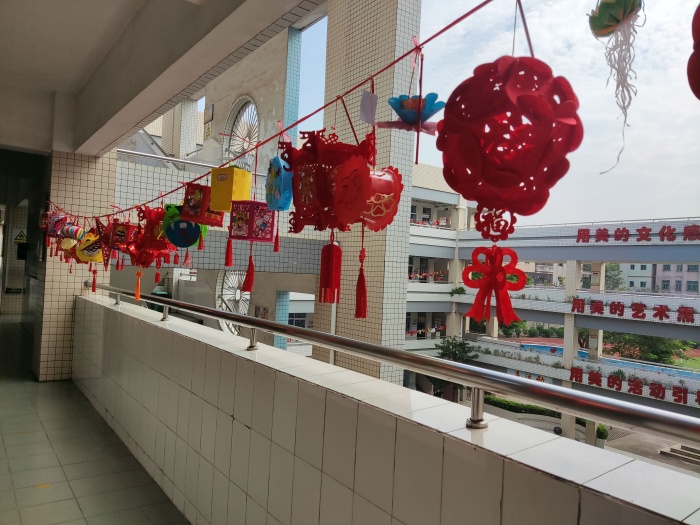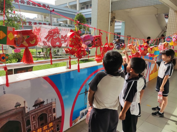 接著,三沙小學以年級為單位評選出近百個設計精巧、色彩繽紛、獨具匠心的燈籠作品。有的燈籠鮮艷熱忱,寄托濃濃的情思;有的燈籠古風溫婉,承載中秋佳節的祝福;有的燈籠實用精巧,暗含“變廢為寶”的巧思。它們懸掛在校園之中,學生們下課后就聚集在燈籠下,興奮地跟小伙伴介紹自己的燈籠,十分歡樂。