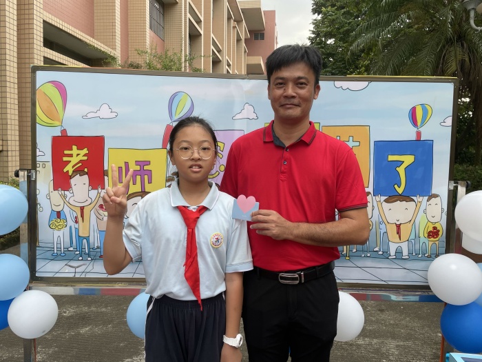 為了迎接一年一度的教師節(jié),旗北小學(xué)全體行政和體藝科組提前精心策劃,給旗北小學(xué)全體教師送上最真摯的祝福。上午7時(shí)30分,教學(xué)樓樓梯鋪上了鮮艷的紅地毯,裝點(diǎn)上節(jié)日的氣球,學(xué)生站在地毯兩側(cè),靜候旗北小學(xué)教師的到來(lái)。當(dāng)各位教師走上紅毯時(shí),兩旁學(xué)生一齊對(duì)老師說(shuō):“老師,您辛苦了,節(jié)日快樂(lè)!”隨后,學(xué)生向老師送出親手寫(xiě)的賀卡并和老師合影留念,讓全體教師感受到了節(jié)日的驚喜。