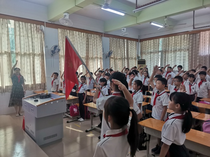 為迎接中山市第八次少代會(huì)召開(kāi)營(yíng)造良好社會(huì)氛圍,帶領(lǐng)全市少先隊(duì)輔導(dǎo)員和少先隊(duì)工作者,共同團(tuán)結(jié)、教育、引領(lǐng)少先隊(duì)員高舉隊(duì)旗跟黨走,努力成長(zhǎng)為能夠擔(dān)當(dāng)民族復(fù)興大任的時(shí)代新人。9月18日,厚興鄭偉權(quán)學(xué)校少先隊(duì)大隊(duì)舉行喜迎“八少”提心愿 高舉隊(duì)旗跟黨走主題中隊(duì)會(huì)活動(dòng)。