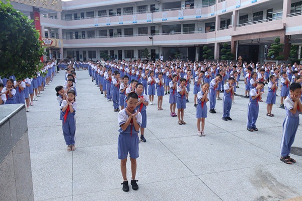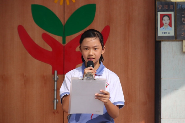 9月10日大課間,五3班的林倩婷同學代表全體同學向全校老師獻詞。她將無私奉獻的老師比作人梯、園丁、春蠶和蠟燭,言語中流露著對老師的感恩之情。她滿懷深情的話語,飽含激情的言辭感染了在場的每一位師生。