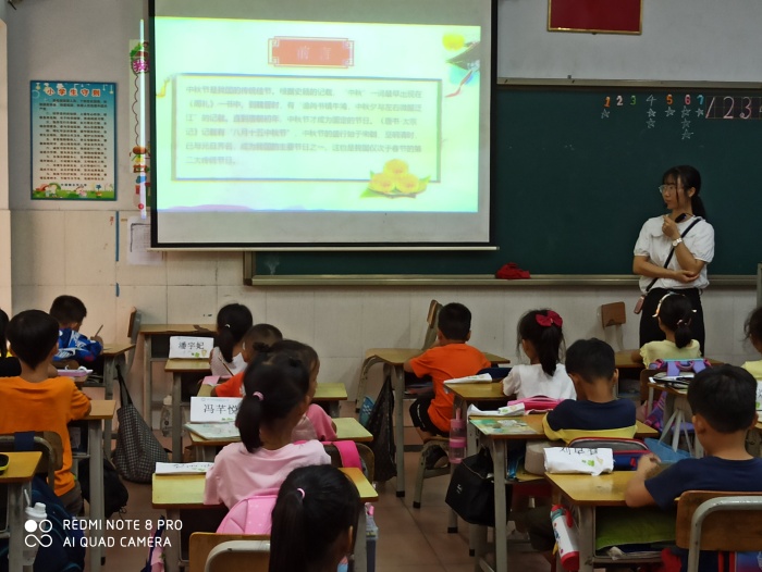 班會課上,班主任通過PPT、視頻等方式向同學們講述了中秋節的起源、寓意。通過老師的講解,同學們還知道了嫦娥奔月的神話故事,進一步了解傳統佳節中秋文化。在班主任的帶領下,同學們一起吟誦了關于中秋節的古詩歌,從中感受到了傳統節日所蘊含的深厚文化內涵,感受中華民族傳統文化的悠久歷史。