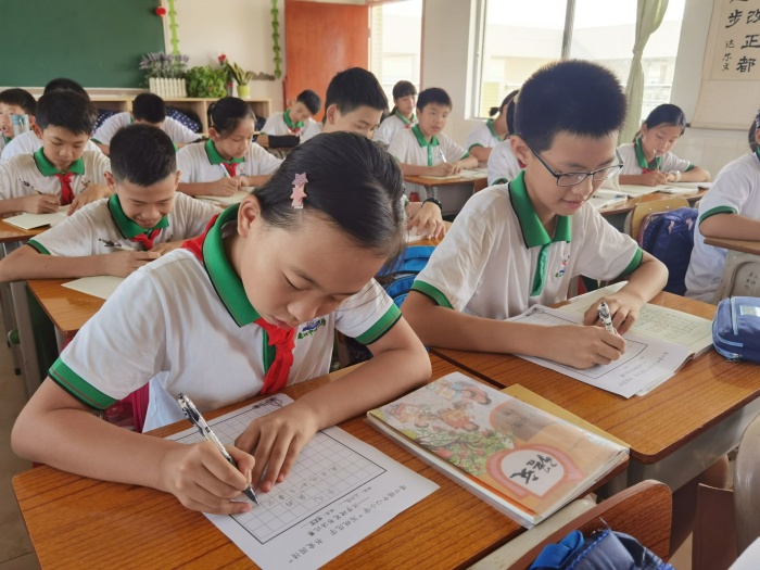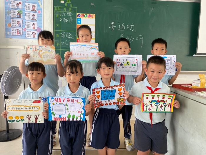 各年級(jí)也舉辦了特色鮮明的推廣普通話活動(dòng)。一年級(jí)的小同學(xué)化身小老師,用標(biāo)準(zhǔn)的普通話向長(zhǎng)輩們誦讀課文或講述生動(dòng)有趣的故事,讓推普活動(dòng)走進(jìn)家家戶戶。二年級(jí)的紅領(lǐng)巾宣講員們同學(xué)們字正腔圓、聲情并茂地講述了英雄先烈們的英勇感人事跡,傳承紅色基因。三年級(jí)的同學(xué)們?yōu)橥破栈顒?dòng)設(shè)計(jì)了一幅幅版式精美的推廣普通話宣傳標(biāo)語(yǔ)。四年級(jí)老師和同學(xué)們精心挑選誦讀內(nèi)容進(jìn)行誦讀經(jīng)典詩(shī)文比賽。千年流傳的文化古韻,伴著稚嫩的聲音,為校園增添了濃厚的文化韻味。五年級(jí)開(kāi)展了繪制“講普通話,寫規(guī)范字”手抄報(bào)比賽活動(dòng)。同學(xué)們通過(guò)精美的手抄報(bào),用實(shí)際行動(dòng)響應(yīng)祖國(guó)“推普”號(hào)召,抒發(fā)自己的愛(ài)國(guó)情!漢字硬筆書法比賽在六年級(jí)中開(kāi)展。同學(xué)們筆尖流轉(zhuǎn)出一行行優(yōu)美的漢字,在字里行間發(fā)現(xiàn)中華文字的魅力,發(fā)現(xiàn)中華文化的深厚內(nèi)涵。