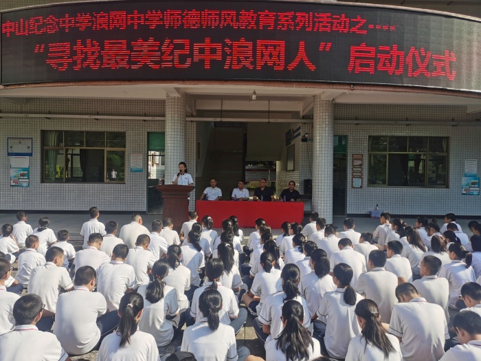 百年大計,教育為本;教育百端,師德為先。為進一步提升學(xué)校教師思想政治素質(zhì)和師德師風(fēng)水平,切實增強廣大教師教書育人的責(zé)任感和使命感,中山紀念中學(xué)浪網(wǎng)中學(xué)于9月15日上午,在教學(xué)樓一樓地坪舉行師德師風(fēng)教育系列活動之“尋找最美紀中浪網(wǎng)人”啟動儀式。本次活動特別邀請了民眾街道分管教育的黃峰副鎮(zhèn)長、教育和體育事務(wù)中心黃海文主任參加。中山紀念中學(xué)浪網(wǎng)中學(xué)馮七勝副校長主持本次活動,全校師生參加活動。