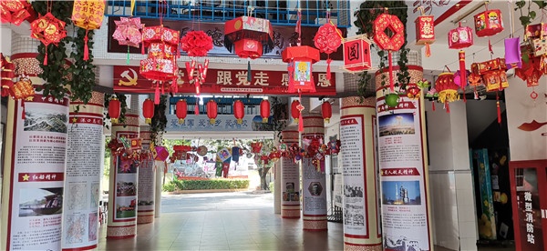 一花獨放不是春,百花齊放春滿園。家長們、學生們都積極響應,開動腦筋,充分利用紙盒、塑料瓶、利是封、一次性筷子等日常生活中廢棄的材料,精心制作出一盞盞設計精巧、色彩繽紛、獨具匠心的燈籠。有的燈籠熱情似火,寄托著濃厚的情誼;有的燈籠婉約動人,承載著中秋的祝福;有的燈籠實用精巧,暗含著環保的創意……為了能讓全校師生一同觀賞,9月23日,綜合科組的老師們積極籌備,把各班極具創意的手工燈籠都掛在學校內庭。燈籠一經展出,立刻吸引了廣大師生駐足觀賞。有了燈籠的裝飾,校園內瞬間變得喜氣洋洋。學生們下課后就聚集在燈籠下,興奮地跟小伙伴分享自己喜歡的燈籠,非常快樂。