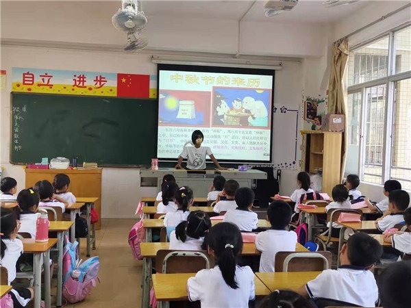 9月18日,全校各班開展了“我們的節日——中秋節”主題班會活動。在一片歡聲笑語中,老師們通過生動有趣的圖片、故事、音頻、視頻等,給學生們講述了中秋節的來歷和習俗。學生們沉浸在嫦娥奔月、玉兔搗藥、吳剛伐桂等故事中,聽得津津有味,體會到傳統習俗的魅力。老師們也強調了在中秋節放假期間要注意安全,以防意外發生。老師們還為學生們講述了手工燈籠的制作方法,展示了中秋節燈籠的相關圖片,布置學生們利用中秋假期,親子共同制作手工燈籠,把做好的燈籠帶來學校參加評比并布展。