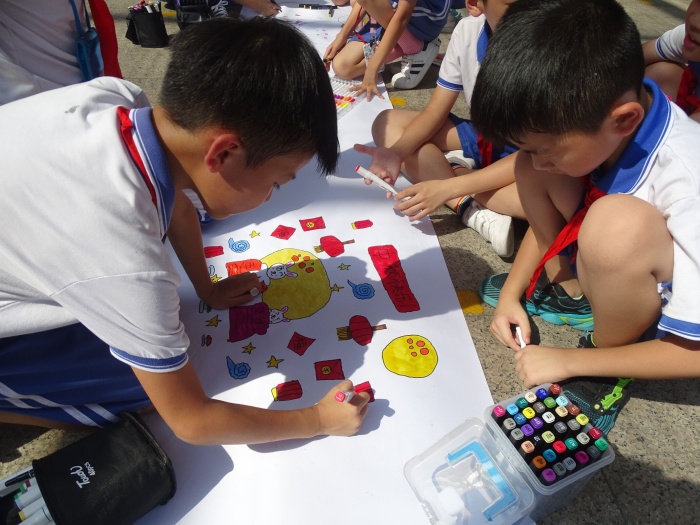 此次活動以周瑞珍校長為總指揮,德育處、教導處做好前期部署,不同年級分別開展不同的活動。一至三年級的學生變身小小藝術家,開動腦筋,親手制作一張張精美的紙盤創意繪畫,紙盤上有各種各樣的圖案,如嫦娥、玉兔、月亮等等,構圖有趣,顏色鮮艷,一筆一畫充滿著濃濃的中秋情。四五年級的學生進行“百人畫長畫”活動,場面壯觀。學生想象豐富,以自己的視角,用小小的畫筆表達對中秋節深深的祝福!六年級的學生猜燈謎,校園內的小操場、棋藝園內懸掛著彩帶,100多條燈謎競相爭輝,謎面科學而通俗、生動而活潑,有猜字的、有猜成語的、有猜人名的、有猜地名的……燈謎涉及的面廣而量大。學生認真思考,熱烈討論,紛紛猜對燈謎,兌換一份心儀的獎品。校園內一片歡聲笑語,全校學生玩得不亦樂乎!