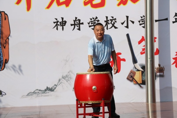 活動(dòng)開(kāi)始,一年級(jí)的新同學(xué)們就在父母的陪伴下穿過(guò)“智慧門”,進(jìn)入會(huì)場(chǎng)。接著神舟學(xué)校德育處韋德敏主任宣布“開(kāi)筆禮”活動(dòng)正式開(kāi)始。神舟學(xué)校高華副校長(zhǎng)首先致詞,高華校長(zhǎng)表示:今天我們結(jié)合時(shí)代的特點(diǎn),古為今用,古今結(jié)合,并有所創(chuàng)新地舉行開(kāi)筆禮儀式,目的就是想通過(guò)這種莊重的儀式,讓剛?cè)雽W(xué)的一年級(jí)小朋友真正感受到入學(xué)是人生中的一件大事,是開(kāi)始學(xué)習(xí),走向成才的起點(diǎn),要以此激勵(lì)同學(xué)們珍惜讀書(shū)機(jī)會(huì)、勤奮學(xué)習(xí);同時(shí)又通過(guò)這種特別的方式弘揚(yáng)我國(guó)優(yōu)良的傳統(tǒng)文化。高華校長(zhǎng)講話結(jié)束后,主持人又組織大家依次開(kāi)展了“正衣冠”、行“拜師禮”、點(diǎn)朱砂啟智、擊鼓明智及啟蒙描紅活動(dòng),這五個(gè)頗具歷史傳統(tǒng)意義的環(huán)節(jié),讓孩子們感受到了傳統(tǒng)文化的魅力。