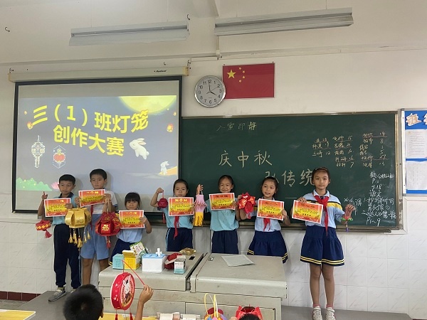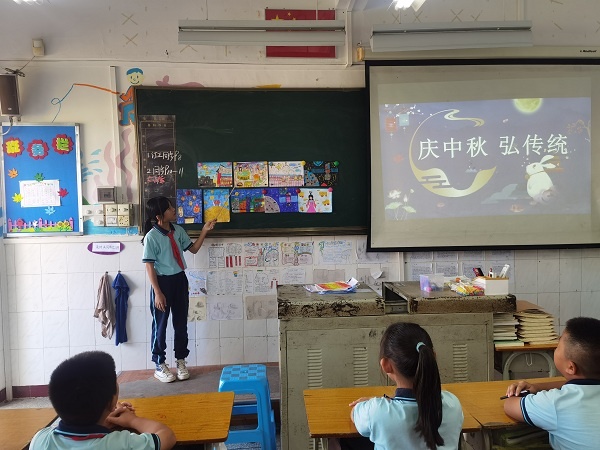 9月18日,為了讓學生更深入了解中秋節文化,少先隊大隊輔導員朱文娟老師在國旗下深情地講述關于中秋節的來歷,與學生們一起吟詠文人墨客的經典詩文,呼吁大家繼承祖國優秀傳統文化和傳統節日,增強民族文化自信心。班會課上,班主任有條不紊地開展活動。如一、二年級的小朋友,在爸爸媽媽的幫助下帶上月餅、水果等美食,與同學們開展中秋傳統美食交流會。三、四年級開展一次中秋創意燈籠展示會。會上,學生提著親手制作的燈籠得意地分享他們的制作樂趣。