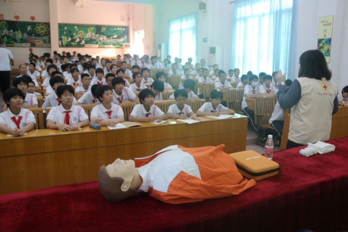 為了有效地推進應急救護普及工作,切實增強學生災害預防、逃生避險和自救互救能力,2021年9月22日下午4點,一場意義非凡的急救培訓活動在橫欄中學階梯教室舉行。本次活動由中山市紅十字會衛生培訓中心進行指導,由黎子丹、陳怡兩位老師負責授課,她們秉承著專注專業的精神,力求幫助全體參會的初一年級的師生有效地提高應急救護技能。