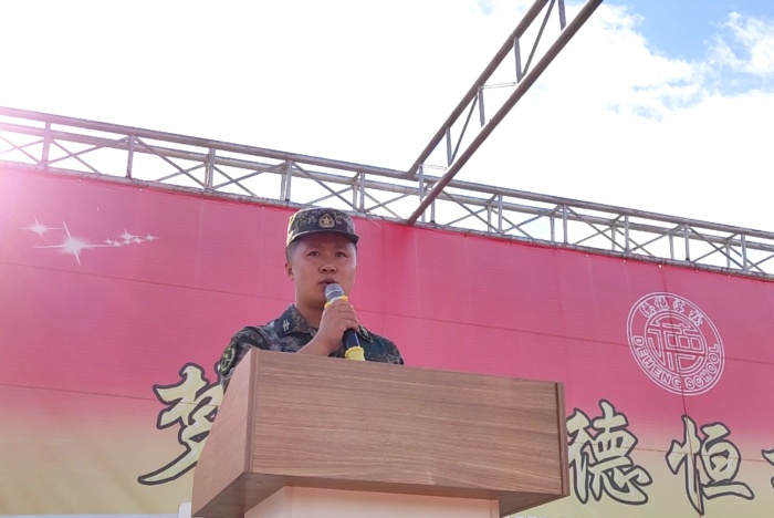 隨后,民眾街道武裝部陳順興代表全體教官發表了講話,向同學們明確了本次軍訓的訓練目標及要求,在軍訓過程中,要做到尊敬教官、服從命令、克服困難、嚴格訓練。