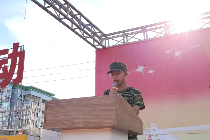 高一1班范天銘同學作為學生代表發表了講話,“要向教官學習,加強集體觀念的培養;要嚴格要求自己,讓每一天都有新的收獲和感悟。”