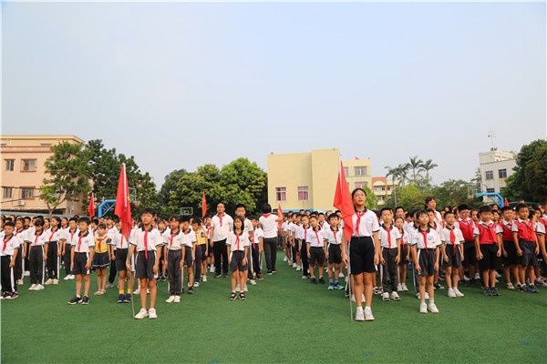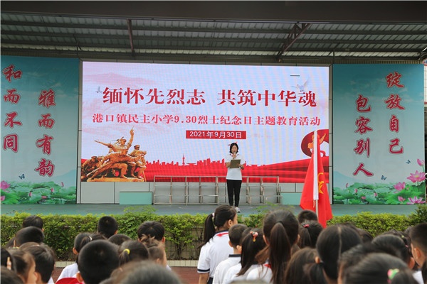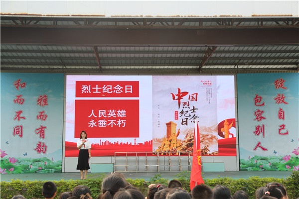 八點(diǎn)整,校園里響起莊嚴(yán)的國(guó)歌,鮮艷的五星紅旗緩緩升起,在場(chǎng)師生肅然而立,向國(guó)旗行注目禮,少先隊(duì)員行隊(duì)禮,進(jìn)行國(guó)家烈士紀(jì)念日升旗儀式。全體師生通過(guò)觀看愛(ài)國(guó)影片《祖國(guó)不會(huì)忘記》、聆聽黃嘉欣主任的發(fā)言《緬懷先烈 紅色故事傳承革命精神》、全體師生齊唱《少年》和《中國(guó)少年先鋒隊(duì)隊(duì)歌》等方式深切緬懷為民族獨(dú)立、人民解放、國(guó)家富強(qiáng)、人民幸福英勇獻(xiàn)身的革命先烈,傳承弘揚(yáng)革命精神,不忘初心、牢記使命。