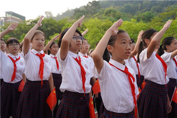 “不負(fù)時代,強(qiáng)國有我!”升旗儀式最后,學(xué)校近8000名師生發(fā)出時代強(qiáng)聲,立志以奮斗踐行“不負(fù)時代,強(qiáng)國有我” 的有力誓言,向祖國致以青春禮贊!