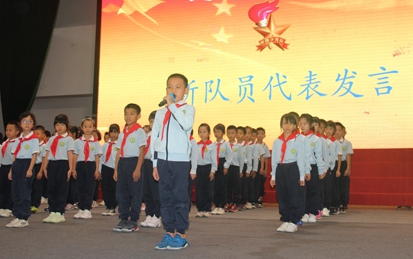 新隊(duì)員們?cè)谏傧汝?duì)大隊(duì)委蔡鯤燁的帶領(lǐng)下,面對(duì)莊嚴(yán)的隊(duì)旗,舉起右拳鄭重地宣誓。新隊(duì)員代表饒志城同學(xué)作為新隊(duì)員代表發(fā)言表決心,此時(shí)他的心情是激動(dòng)的,是光榮的,是自豪的。吳靖華同學(xué)作為老隊(duì)員代表發(fā)言,她勉勵(lì)新隊(duì)員要用自己的實(shí)際行動(dòng)為紅領(lǐng)巾增光添彩。隨后,大家一起欣賞由合唱隊(duì)的六名少先隊(duì)員帶來的小組唱《童心向黨》。活動(dòng)最后,大隊(duì)副輔導(dǎo)員司徒詠老師作活動(dòng)小結(jié)并帶領(lǐng)全體少先隊(duì)員呼號(hào)。莊嚴(yán)的入隊(duì)儀式在孩子們的呼號(hào)聲中拉下帷幕。
