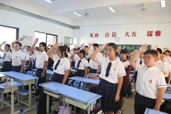 為認真學習宣傳貫徹習近平總書記在慶祝中國共產黨成立100周年大會上的重要講話精神;深入學習貫徹習近平總書記關于少年兒童和少先隊工作的重要論述;貫徹落實《中共中央關于全面加強新時代少先隊工作的意見》;進一步推動少先隊黨史學習教育走深走實。在10月11日的升旗儀式上,中山市大信學校黨支部書記杜少君同志為全體少先隊員集中開展了以“請黨放心,強國有我”為主題的思政課學習。