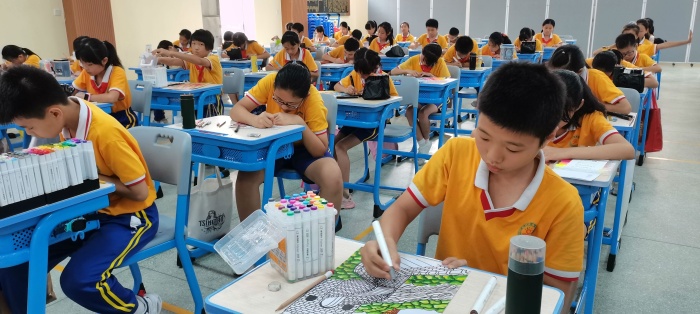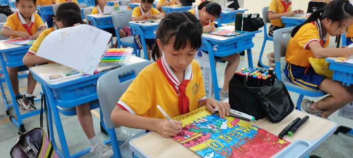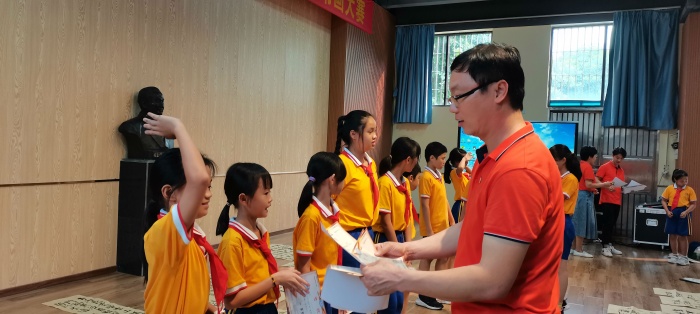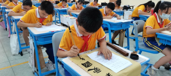 經過一小時的比賽,同學們完成了作品的創作,各評委老師分別評出了繪畫組和書法組的一、二、三等獎。書法組負責人柏遠平老師、鄭紅玉老師暨對此次的書法比賽取得的進步進行了表揚,同時也指出了同學們應該改進的方向。轉眼看向繪畫組這邊,藝術科組長和美術老師廖月玲對可取之處和不足之處分別做了點評。最后陳敏華校長總結了此次活動的重要意義,希望在以后的日子里同學們不斷提高綜合素養,賡續百年初心,弘揚偉大愛國精神,少年兒童應該自覺融入國家發展大局,為中華民族偉大復興中國夢貢獻力量,共享民族復興的榮光。