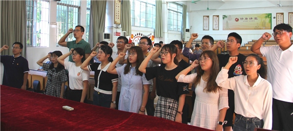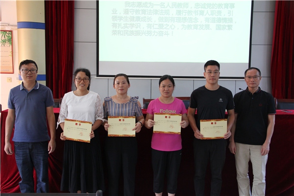 在馮杰文副校長的帶領下,新教師莊嚴入職宣誓。慷慨激昂的聲音使他們在感動中增強了責任意識,飽滿深情的錚錚誓言銘刻下他們對祖國教育事業的莊重承諾。他們將扮演新的角色,承擔新的責任、開啟新的征程。