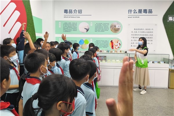 禁毒教育基地的社工化身為講解員,為四(1)班的學生們講解了毒品的歷史、毒品的危害和相關(guān)法律知識,學生們認真聆聽,不時與講解員進行互動。隨后,大家參觀了KTV、監(jiān)獄等多個情景模擬教育區(qū),學習到了許多禁毒方面的知識。學生們紛紛表示要珍惜生命,認清毒品的危害,遠離毒品。