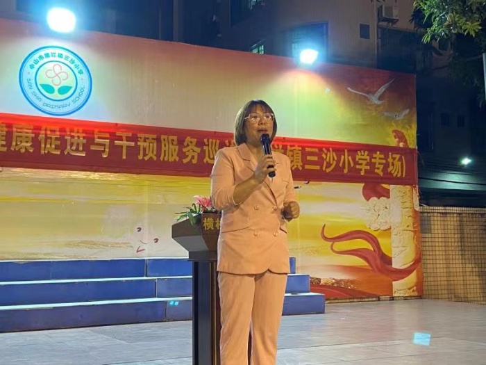 隨后,三沙小學馮紅燕校長致辭。馮紅燕對上一學年全校師生在省級、市級、鎮級等各種競賽中取得的成績進行了總結,并且介紹了學校基本概況和學校的發展方向及規劃,展現了三沙小學良好的辦學質量和精神風貌。