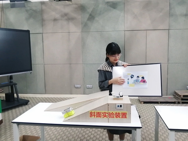 正所謂“臺上一分鐘,臺下十年功”,為了能在這場比賽中拿到好成績,兩位老師很早就開始著手準備了,從開始確定創新實驗的主題,如何改進實驗,實驗材料的準備,實驗裝置的組裝到實驗的測試改善,前前后后經歷了兩三個月的時間。例如《風的能量轉換應用》創新實驗中,為了能夠讓學生清楚得看到風能轉換成電能,增加了一個靈敏電流表,這個過程中要考慮連接方法,選擇的量程,所以經歷了好幾次測試去調換。又例如《適合的坡度》創新實驗中,師傅馬成海老師給了徒弟董夏很多實用性的指導和幫助,把創新的點子轉變成了真實的實驗成品。經過多次的研討,測試,改進等,兩個創新實驗成品誕生了,兩位老師內心無比開心!比賽場上,兩位老師胸有成竹,自信滿滿地給各位評委專家介紹自己的創新實驗作品,得到評委們的一致好評!師徒倆的作品《風的能量轉換應用》和《適合的坡度》均獲得了中山市創新實驗大賽的一等獎!