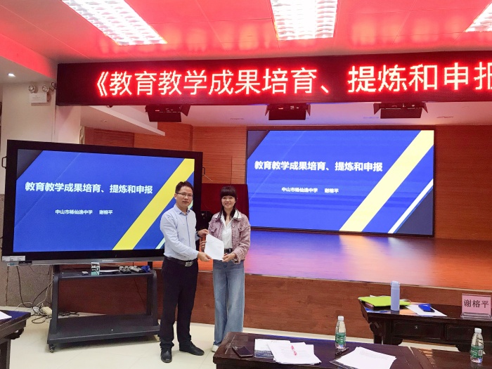 接著楊仙逸中學謝榕平老師代表項目組進行《新課標背景下高中數學思維發展型課堂教學模式的創新與實踐》《教育教學成果培育、提煉和申報》專題講座。謝老師講座干貨滿滿,成果模式和評價等方面對小學數學課堂建設有很大的幫助。