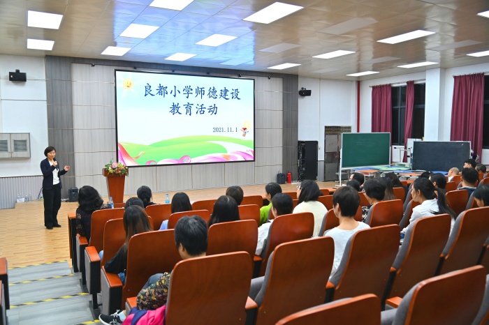 十年樹木,百年樹人。為全面加強全體教師師德師風建設,提高全體教師涵養高尚師德,賡續百年初心,11月1日,良都小學林泳瑤校長給全校教師作師德師風專題講座。南區街道黨工委委員鐘季媛及南區街道教育和體育事務中心吳杏鈿老師參加了本次活動,充分體現了南區街道對師德師風建設的高度重視。