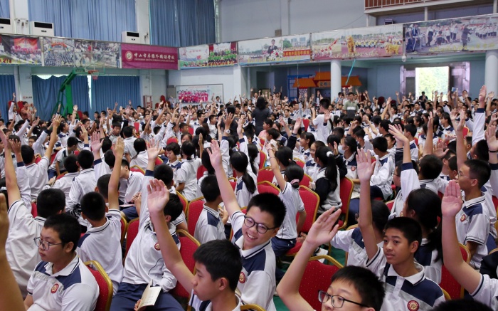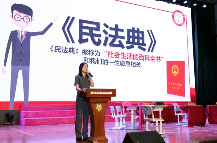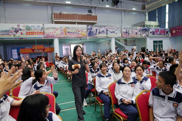 為了激發同學們對學習了解法律的興趣,中山市第一人民法院審判管理辦公室法官助理吳娟歡為大家開展民法典普法互動活動。同學們踴躍舉手發言提問,現場氣氛熱烈,掌聲不斷。