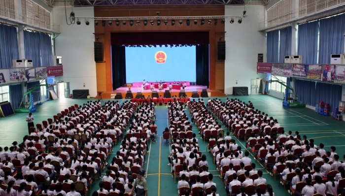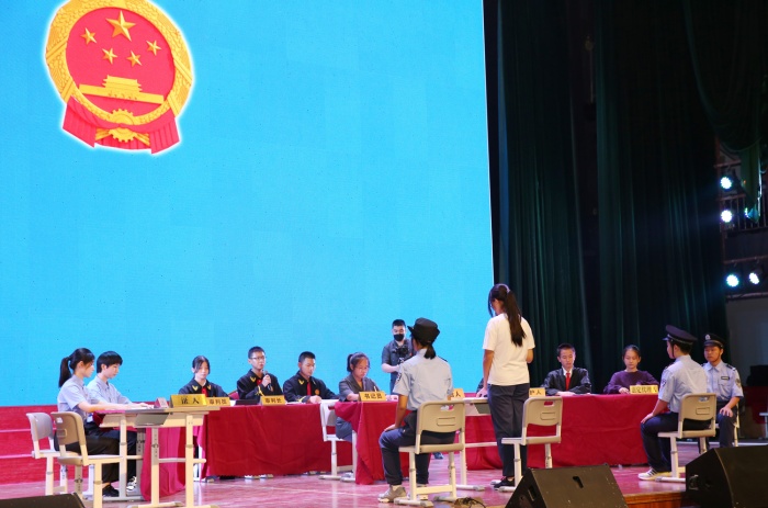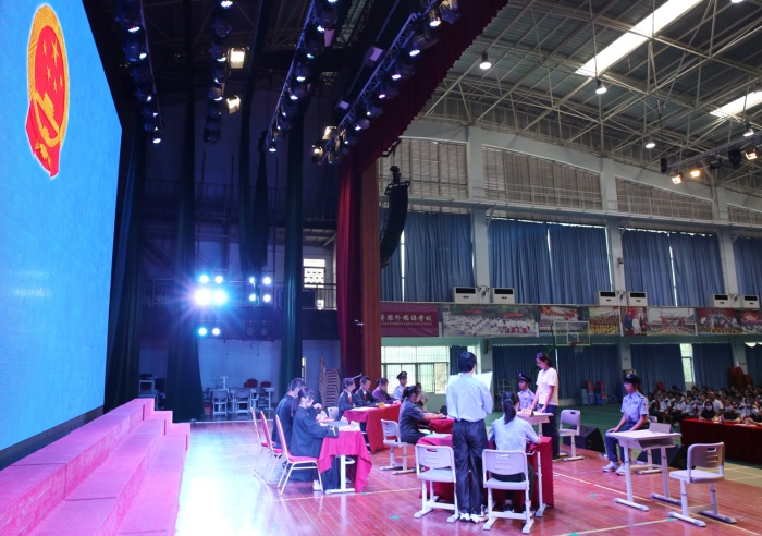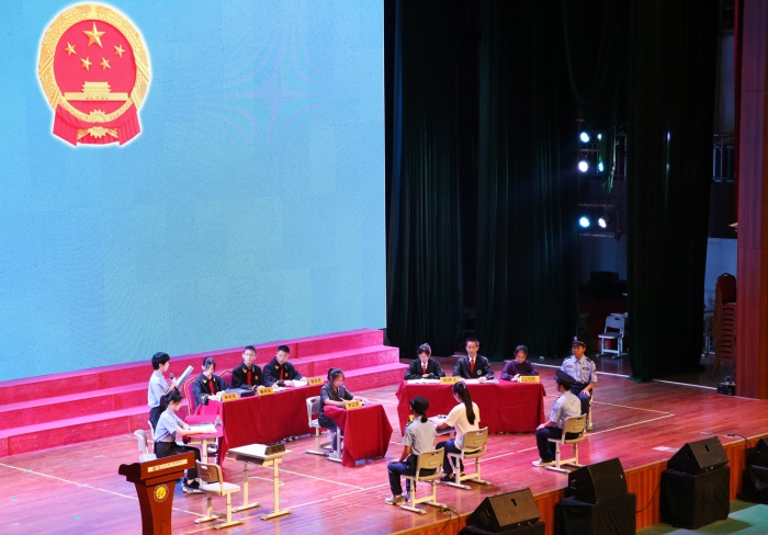 模擬法庭上,卓雅外校的學生分別飾演了審判長、審判員、人民陪審員、書記員、公訴人、辯護人、被告人、法警等角色,詳細還原案件的審判過程。臺下的同學們“零距離”感受法庭的威嚴和法律的嚴肅,通過觀看這樣一場“真實”的審判,大家深刻認識了尋釁滋事罪的危害和后果。