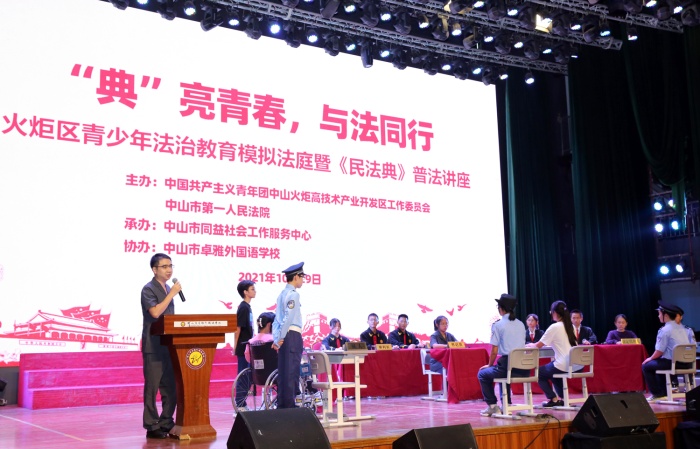 本次活動由中國共產主義共青團中山火炬高技術產業開發區工作委員會、中山市第一人民法院主辦,中山市同益社會工作服務中心承辦,中山市卓雅外國語學校協辦。中山市火炬開發區法庭副庭長鄧文輝法官、卓雅外校副校長李文等參加活動。