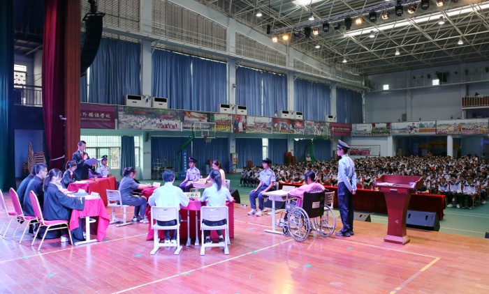 模擬法庭”結束后,鄧文輝法官為本次模擬法庭做現場指導,讓現場同學們明白“‘未成年’不代表可以肆意妄為”,為同學講解校園早戀的危害,希望同學們珍惜校園生活,珍惜身邊同學,珍惜自己美好的青春。