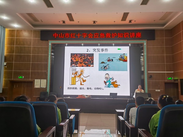 講座中,高老師向同學們講解了校園安全、防災避險緊急呼救、逃生技巧、預防溺水等知識。通過案例分析、知識問答、情景模擬等形式,圍繞日常生活中可能遇到的各種危險或自然災害,高老師生動地為學生講解了相關應急救護知識,告訴學生在遇到緊急情況應當怎么做,從而達到增強自我保護意識的目的。