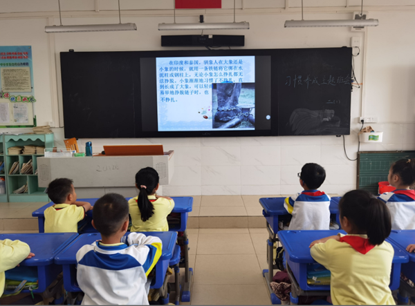 活動中,老師們給同學們分享了通用英語的新加坡用中文書寫標語提醒中國游客講文明以及國慶節后天安門廣場隨處可見口香糖殘跡的小故事,來告訴同學們講文明、懂禮貌的重要性。在老師的引領下,同學們坐姿端正、全神貫注,再次溫習了個人禮儀、尊師禮儀、課堂禮儀、排隊禮儀、升旗儀式、文明就餐、愛護公共場所等各個方面的文明禮儀。