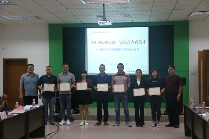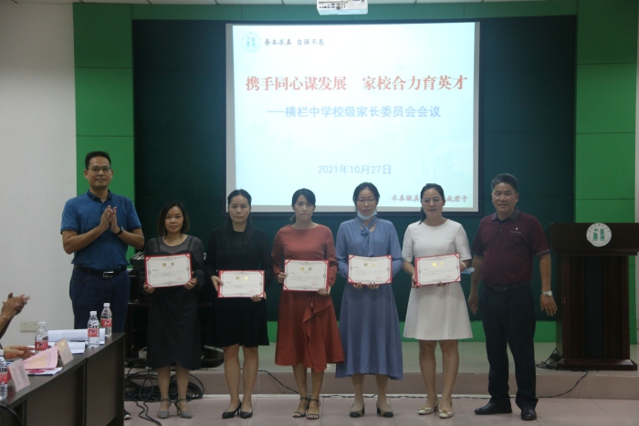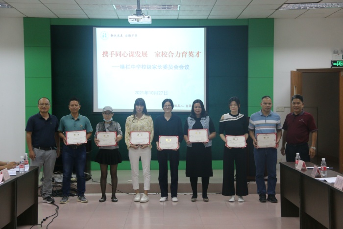 緊接著,會議集體審議通過了新一屆校級家委會成員,由黃浩鋒擔任校級家委會主任;梁少群擔任秘書長;楊寶山、黃日明、吳潤明、向芹、梁滿麗、邱喜鵲擔任副主任。并由新一屆家長委員會主任黃浩鋒先生作了表態性發言。同時,學校也為校級家委會全體成員頒發了聘書。