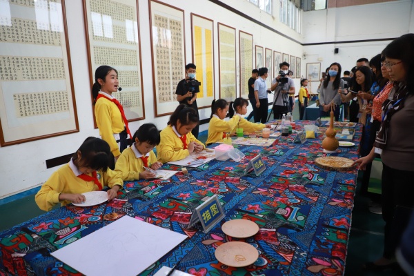 在小導游的帶領下,考察團首先來到民和小學體藝館,參觀景泰藍書畫作品。近年,民和小學提出了“高質量發展”的奮斗目標,特別是在落實“雙減”政策中,學校為學生提供了扎實而豐富的課后服務課程。隨后,考察團駐足觀看了師生的活力跑操,并對民和師生朝氣蓬勃、奮發向上的精神面貌給予了充分肯定。