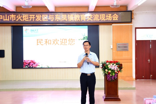 11月4日下午,民和小學迎來了由中山市火炬開發區教育事務指導中心鐘海清主任帶領的共50多人組成的教育考察團一行。東鳳鎮黨委委員冼嘉濤、鎮教體文旅局局長李仕標出席此次交流活動,黃逵明校長帶領民和小學全體行政熱情接待賓客并進行深入交流。