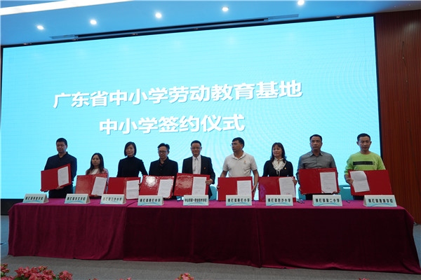 與會人員實地參觀考察了中山一職勞動教育基地建設后,參加了橫欄鎮中小學勞動教育基地掛牌儀式,見證了廣東省中小學勞動教育基地中山一職和對接的橫欄中學、橫欄小學、橫欄鎮第二小學、橫欄鎮三沙小學、橫欄鎮四沙小學、橫欄鎮華文學校、橫欄鎮偉智學校、橫欄鎮港源學校等8所中小學簽約儀式。