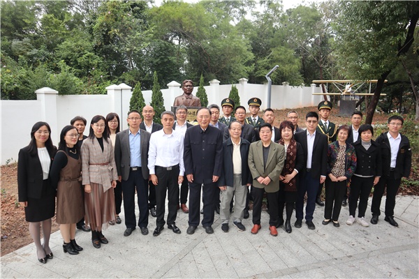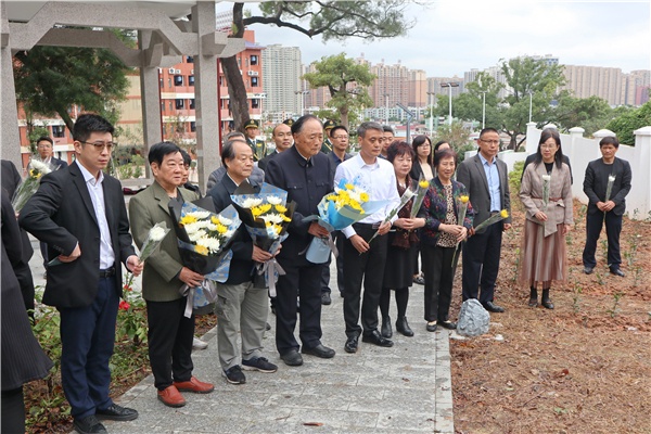 楊仙逸將軍銅像揭幕典禮上,孫必勝、程偉夫、何儉強、陳迪秋、劉朝暉五人共同為銅像揭幕。隨后,在場人員面向楊仙逸將軍銅像鞠躬致敬,瞻仰銅像,向銅像獻花,表達對仙逸將軍的深切緬懷和無限敬仰。學生代表上前獻花敬禮,向銅像許下莊嚴承諾:“繼承和弘揚將軍精神,革新圖強,志在沖天!”錚錚誓言慰先烈,字字千鈞擔使命。典禮后,孫必勝一行還參觀了西林山航空文化園。