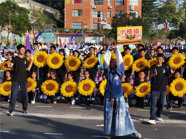 緊隨入場的是各班級方隊,他們身著班服,面帶陽光笑容,朝氣蓬勃,活力四射。每個班的入場式具有明顯風格特色,主題鮮明而靈活多變,令人耳目一新。尤其是部分班級同學們的手工制作道具,讓人“驚喜不斷”。高一年級以“擁抱大灣區(qū)”為主題,每個班級對應一個大灣區(qū)城市,演繹人文風情,展示城市風采,彰顯城市魅力。高二年級以“起航新中山”為主題,每個班級對應中山一個鎮(zhèn)區(qū),“一鎮(zhèn)一特色”、“一鎮(zhèn)一品牌”,以新視角呈現發(fā)展新格局。高三年級以“奮進西林山”為主題,每個班級展現一個學習生活場景,高雅藝術與流行藝術的融合、傳統文化與時尚潮流的碰撞,自信有禮與陽光奮進的輝映,綻放別樣青春風采。