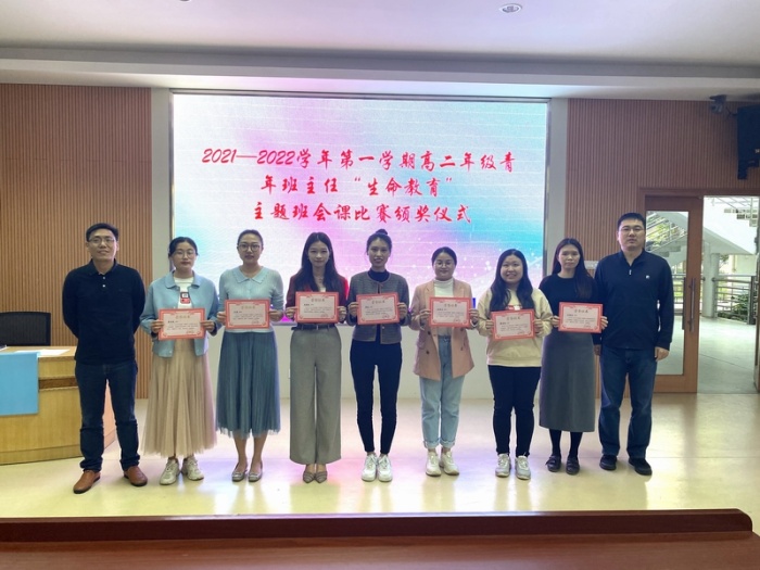 最終,經過評委們的認真評選,譚茜、史楚儀兩位老師榮獲特等獎,韓悅瑤、陳青青兩位老師榮獲一等獎,曾歡琳、牛丹、吳鈺怡三位老師榮獲二等獎。15日下午,在第二學術報告廳舉行的頒獎儀式上,市僑中德育處副主任景千瑞、高二年級德育主任趙順華為獲獎老師頒發了獎狀。