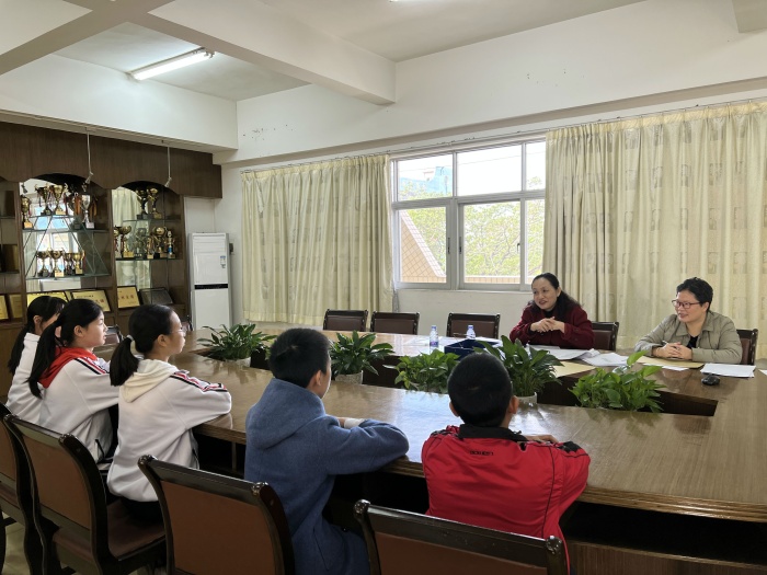 “五項管理”即作業管理、手機管理、睡眠管理、讀物管理、體質管理,督查組到校后首先檢查了學校關于“五項管理”的實施方案,學校的教師分工表、課程表以及作息表等相關基本材料。接著,兩位領導隨機抽取了各年級的學生進行訪談,主要是針對學生每天的作業量、學校的作業管理機制、課后服務開展、課后服務素質拓展、每天的體育鍛煉時間等基本情況進行了解。同時督查組做了問卷調查,她們分別抽取了初一、初二的10名學生填寫調查問卷,更深入地了解學生們在學校生活、學習的基本情況。最后,督查組就有關“五項管理”的一些共性問題跟學校教學處姚建花主任進行了探討和交流。