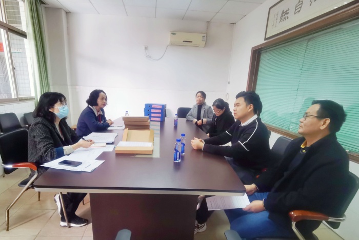 黃海文督學等人采用校園巡查、問卷調(diào)查、查閱資料等多種方式深入校園進行實地督導檢查,詳細了解紀中浪網(wǎng)中學“五項管理”工作落實情況。在巡視校園之后,督導一行人便向紀中浪網(wǎng)中學副校長楚東升、教導處等行政了解落實“五項管理”具體工作的情況。楚東升副校長圍繞學生作業(yè)、睡眠、手機、課外讀物、體育鍛煉時間等方面的內(nèi)容作了詳細匯報。黃海文督學詳細了解了學校的作業(yè)布置要求、學生睡眠時間等安排,特別詢問學校如何與家長家校合作,共促學生健康發(fā)展。同時,督導組與5位老師進行了座談。黃海文督學提出,學校要對學生帶手機入校園進行嚴格管控,建立學生手機校園內(nèi)統(tǒng)一保管制度,對用手機布置或完成作業(yè)行為進行有效管控;落實中小學上課時間規(guī)定,建立學生按時就寢制度;對課外讀物進校園進行管理監(jiān)督,嚴格把好校園推薦圖書質(zhì)量關(guān);組織教師認真學習文件精神,嚴控書面作業(yè)量;嚴格按照國家課程標準,開設(shè)體育與健康課程,落實大課間體育活動及每天鍛煉1小時制度,落實體質(zhì)健康測試制度。