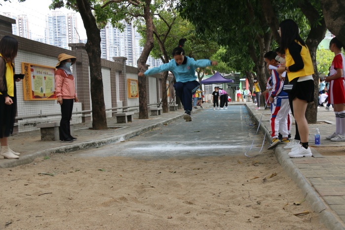 比賽高潮出現(xiàn)在下午的男子和女子4×100米接力賽上,隨著發(fā)令員的一聲槍響,運(yùn)動(dòng)員們英姿勃發(fā),鼓足干勁往前跑。瞧,“小蘇炳添”們緊握著拳頭,憋紅的小臉。運(yùn)動(dòng)員們有一個(gè)共同的目標(biāo):為班級爭光。賽場下,啦啦隊(duì)們?yōu)殛?duì)員吶喊助威,歡呼聲,喝彩聲,鼓掌聲不絕于耳。接著,進(jìn)行的是體育節(jié)小項(xiàng)目考核:立定跳遠(yuǎn)和25米往返跑。學(xué)生們自信倍增,意氣風(fēng)發(fā),奮力奔跑。