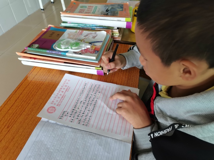 觀看展板后,同學們興致盎然,在老師的指導下,以“給父母的一封信”為題目,親身體驗寫信的全過程。他們把想說給父母的心里話、小心愿等,都書寫在這一張張信紙上,然后小心翼翼折疊裝進信封,把它當作與父母交流溝通的橋梁,投進郵政人員設在學校的臨時“信箱”里,然后期待著承載自己心意的信件能順利送達父母手中。